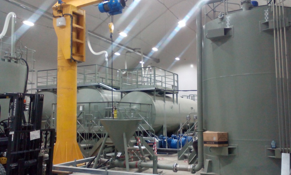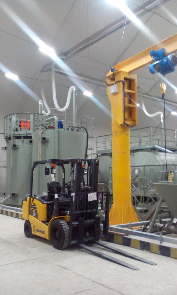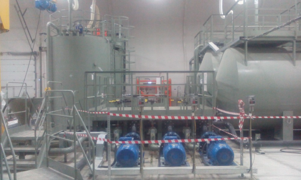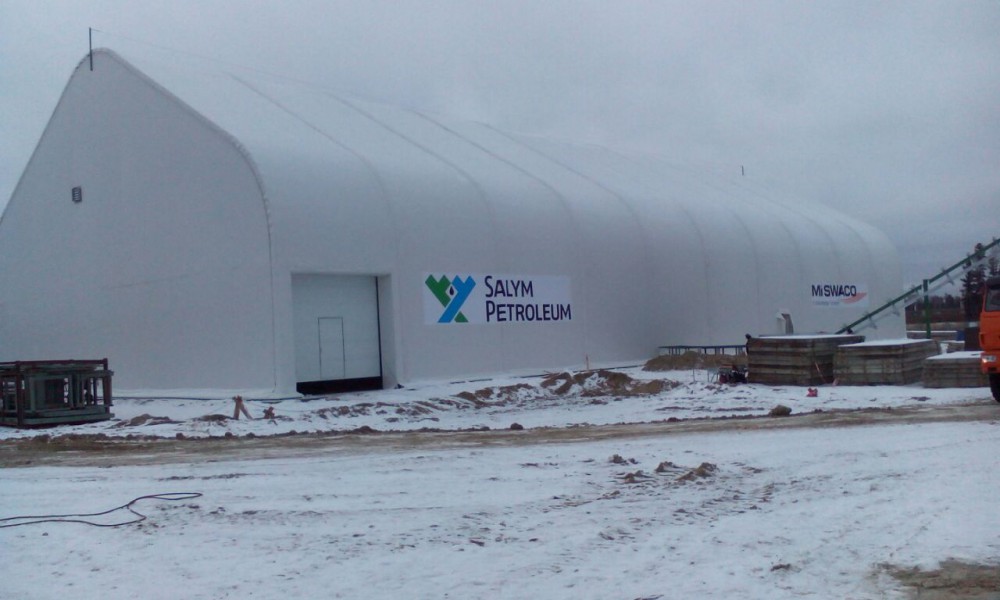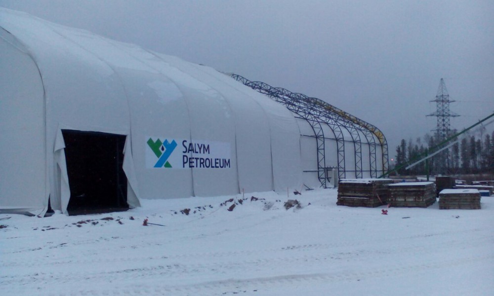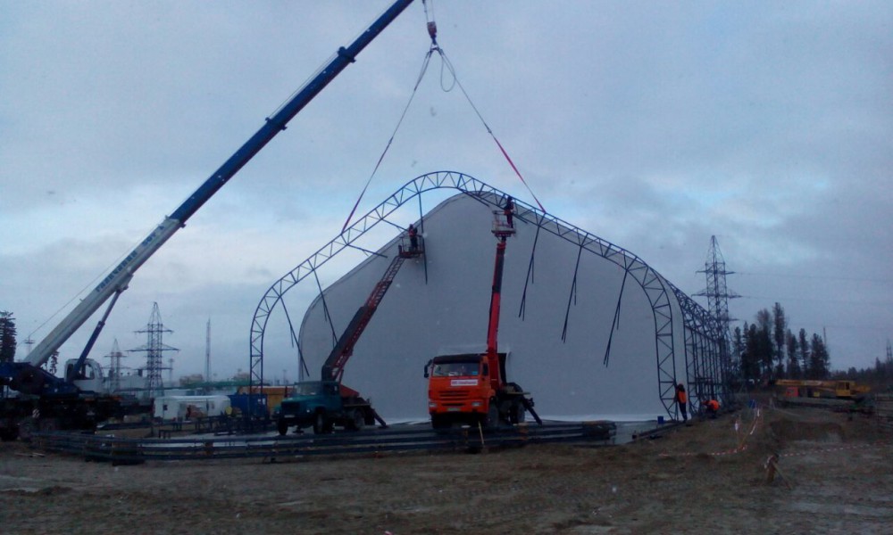 В утепленном каркасно-тентовом ангаре 51х24х13,6м., смонтированном специалистами ООО "ЗТК "Технострой-Сервис", были выполнены строительно-монтажные работы по монтажу, установке и пуско-наладке технологического оборудования для нефтяной компании. Выполнен полный цикл работ "под ключ" от возведения до запуска Завода по производству бурового цементного раствора.